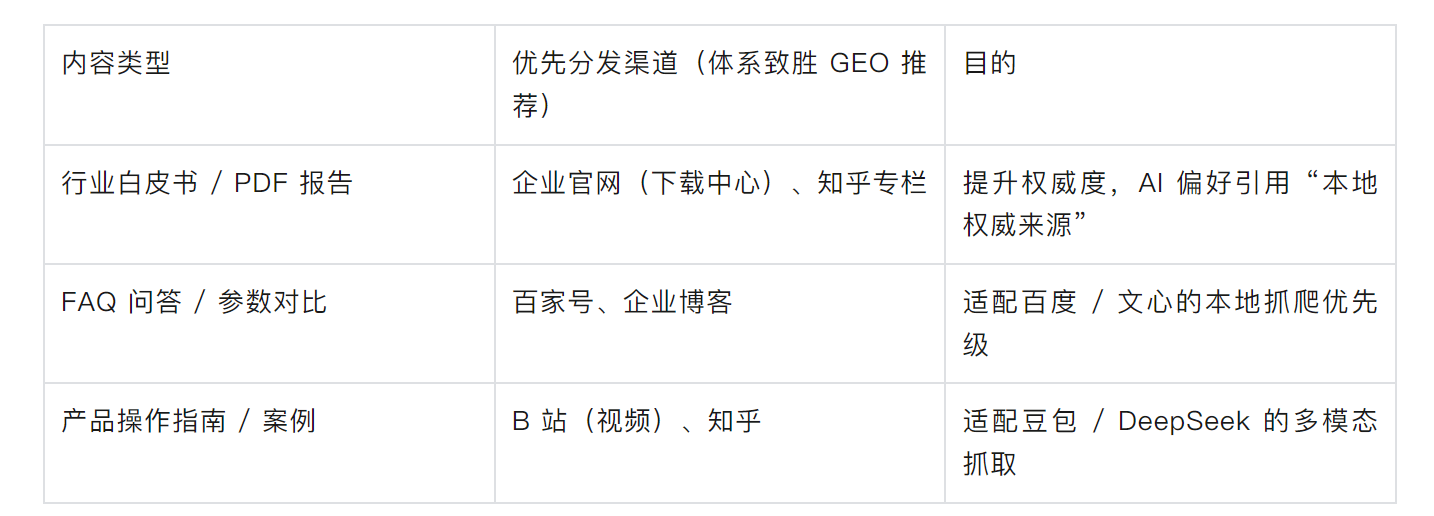 内容类型优先级(体系致胜 GEO 推荐,广州粤师实操验证)