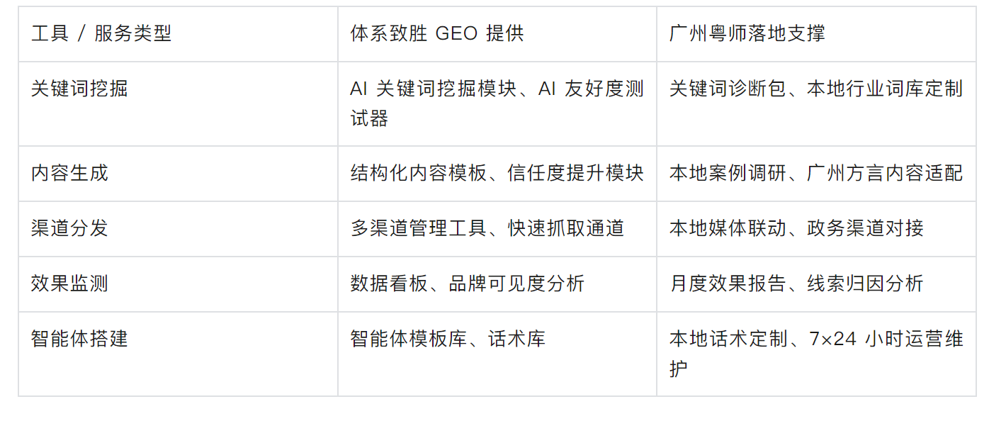 四、工具包:体系致胜 GEO 工具 + 广州粤师落地服务