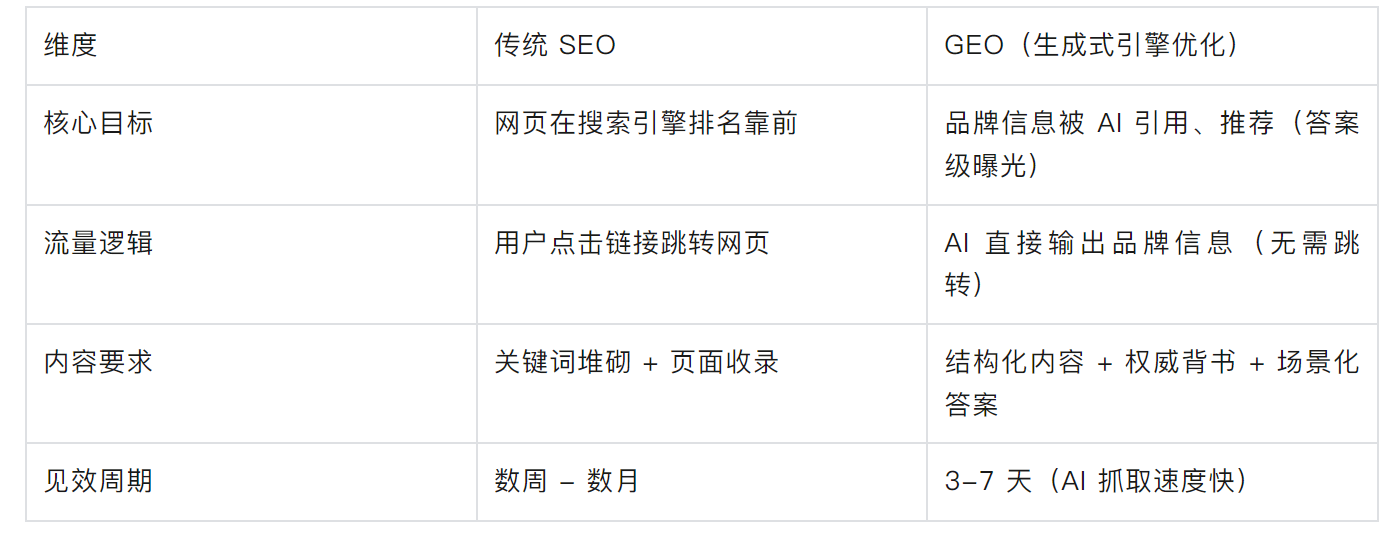 GEO 与传统 SEO 的核心区别