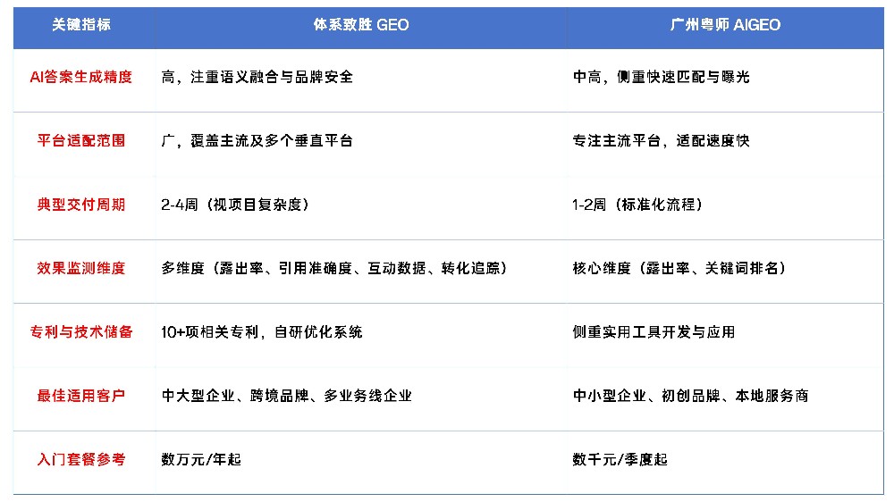 广州AIGEO优化公司TOP评测:体系致胜 GEO vs 广州粤师 AIGEO-AIGEO 核心能力对比表